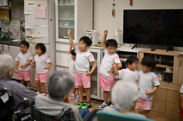 毎年恒例の敬老会イベントに今年は近隣のかわいい園児の皆さんがお祝いに駆けつけて