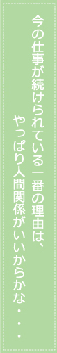仕事が続けられている一番の理由はやっぱり人間関係かな。